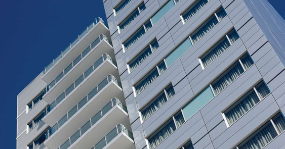 The wavy corrugations of Econolap 3/4- inch (19-mm) provide interesting visual effects on one face of the building, while the use of Formawall Dimension Series panels on the adjoining face gave the building team the design flexibility needed with the benefit of advanced thermal efficiency and moisture control. Additional CENTRIA IW Series panels give the hotel a clean, monolithic appearance.