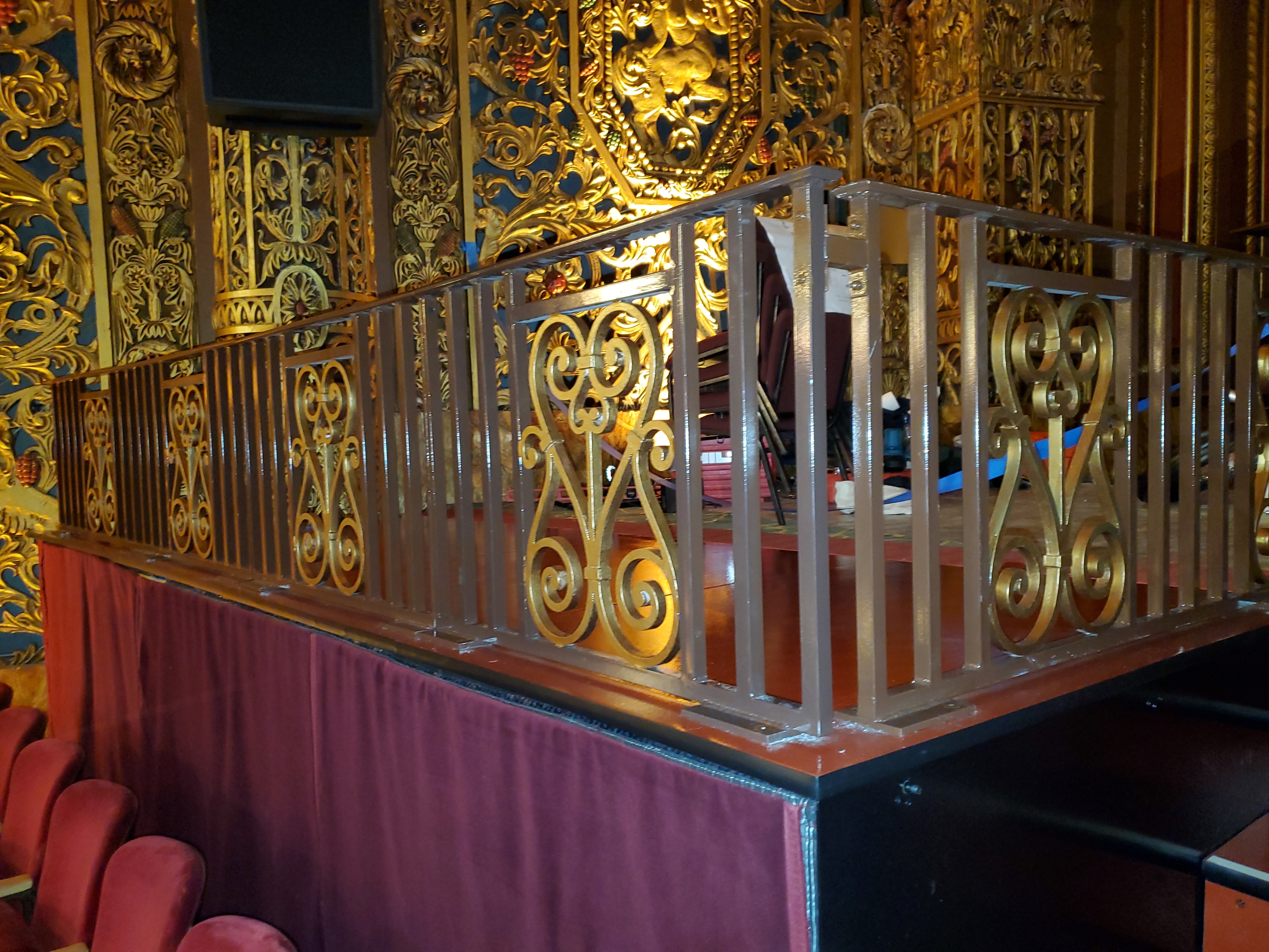 As part of a renovation project at United Palace of Spiritual Arts, New York City, metal railings and platform infills were used. Trex Commercial Inc. supplied picket railings with custom scrollwork, filigree and medallions. Staging Concepts Inc. supplied ADAcompliant platform infills.