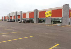 Completed in November 2009, this office and retail space features a metal building and roof from Robertson Building Systems. The 30,125-square-foot (2,799-m2) building is 82 to 86 feet (25 to 26 m) wide by 360 feet (110 m) long with a 25-foot (8-m) eave height. The 24-gauge Galvalume standing-seam roof with a 0:12 roof slope. The project also features masonry block and stone tile. The combination of pre-engineered and conventional construction, including the multiple colored stucco, with stone columns, stone façade and a glass front, make for an attractive facility that was cost efficient and saved construction time.